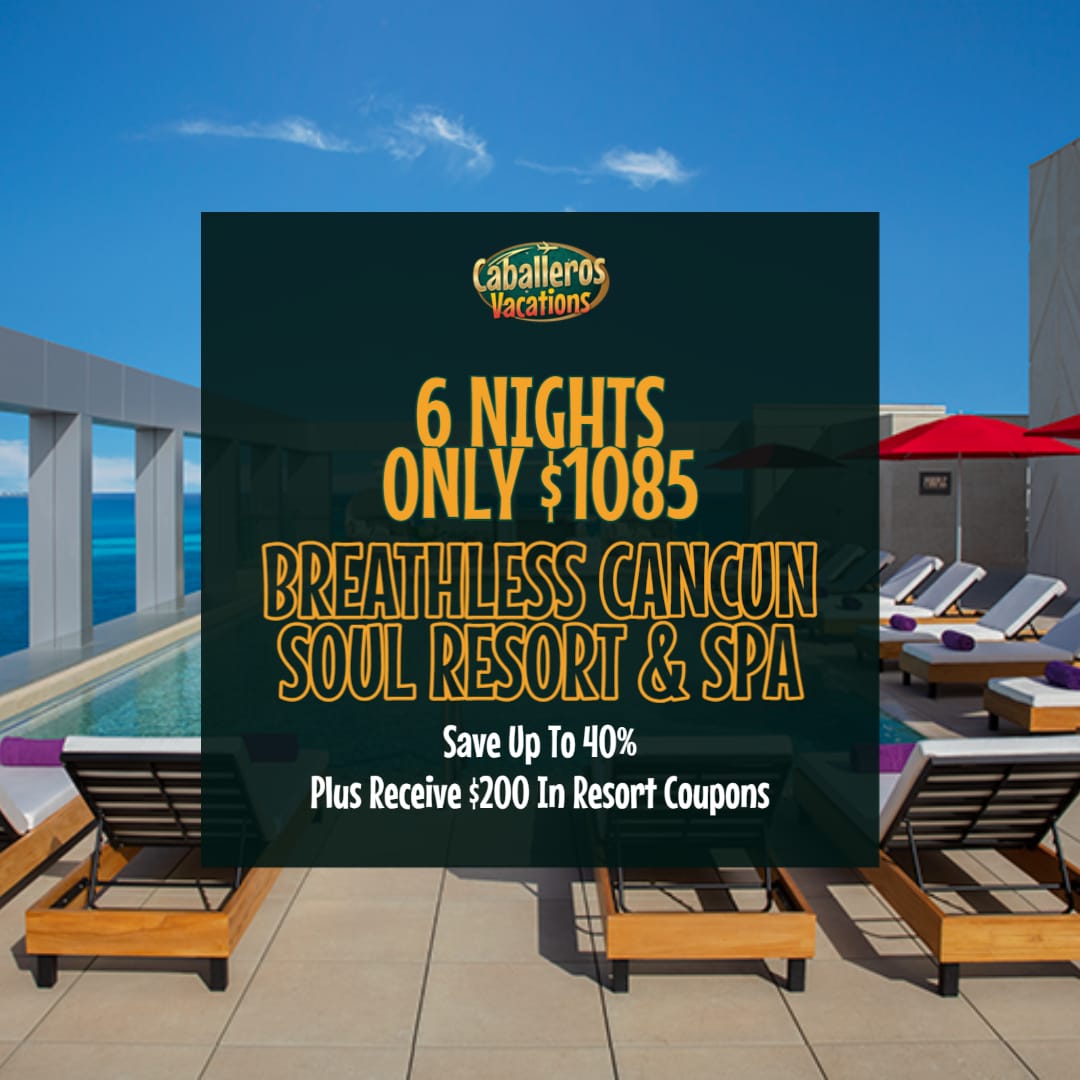 City chic meets edgy opulence at the all new Breathless Cancun Soul Resort & Spa, opened in December 2021. Enjoy a 6 night stay at prices starting at only $1085 per person through September 2022!