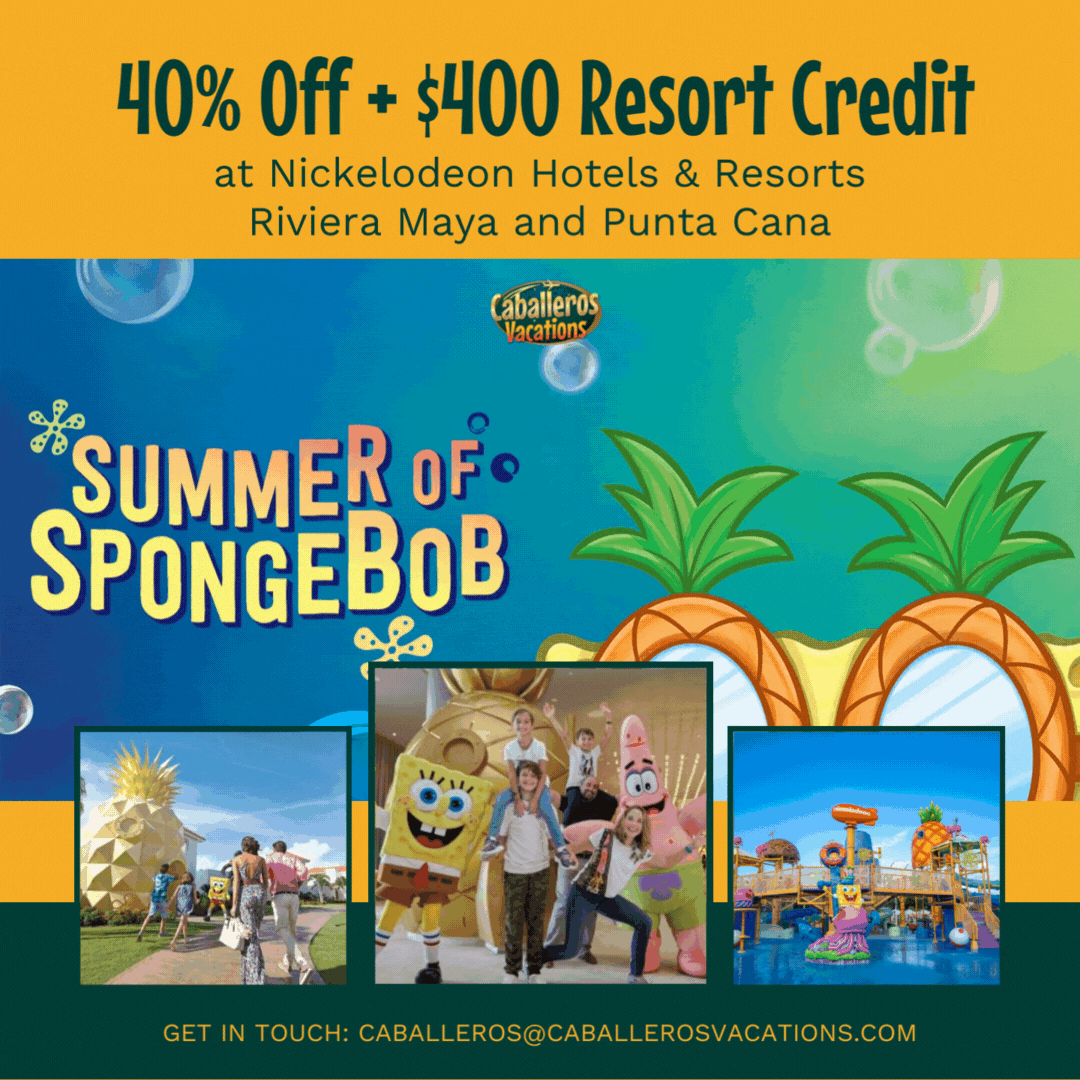 Nickelodeon Hotels & Resorts Riviera Maya and Punta Cana have a world of surprises in store as SpongeBob SquarePants and his crew take over all summer long with 40% off and $400 in resort credit!