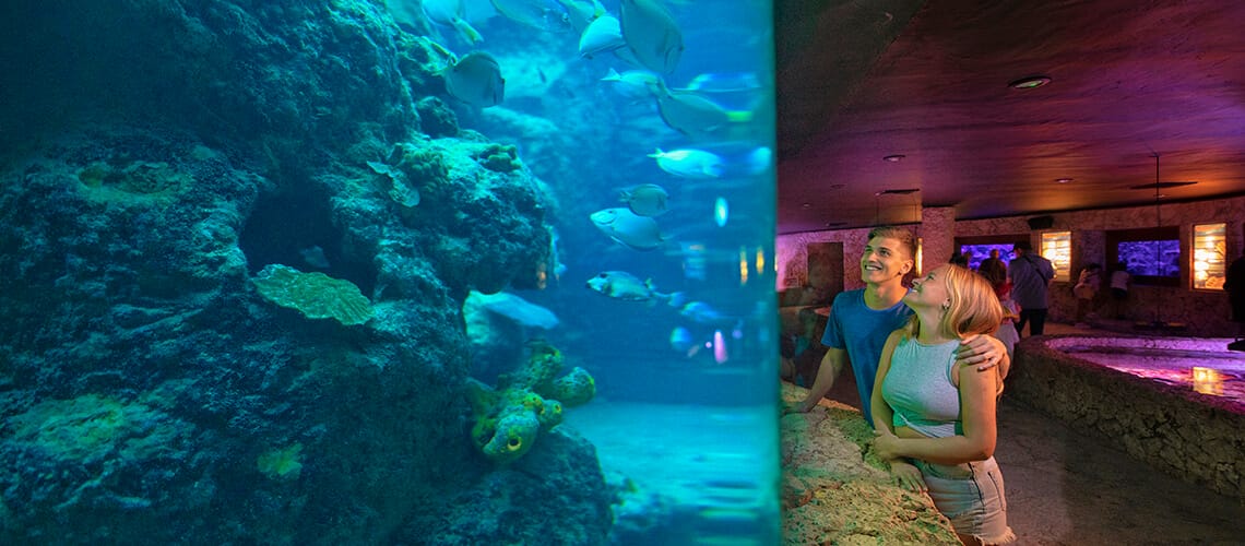 Admire beautiful coral specimens at Xcaretβsβ―Coral Reef Aquarium, in special ponds with windows that allow you to see underwater. See more than 5,000 marine organisms, among which you can see jellyfish, snails, goldfish, rays, and starfish.